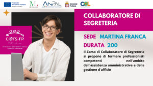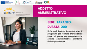 l CIOFS/FP – Puglia è un ente di Formazione Accreditato dalla Regione Puglia per la formazione professionale e l’orientamento. Dal 2018 l’Ente è anche Organismo Accreditato dalla Regione Puglia all’erogazione dei Servizi per il Lavoro.