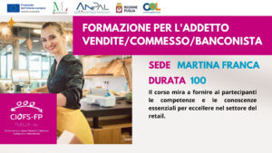 l CIOFS/FP – Puglia è un ente di Formazione Accreditato dalla Regione Puglia per la formazione professionale e l’orientamento. Dal 2018 l’Ente è anche Organismo Accreditato dalla Regione Puglia all’erogazione dei Servizi per il Lavoro.