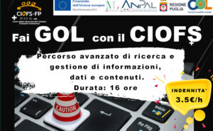 l CIOFS/FP – Puglia è un ente di Formazione Accreditato dalla Regione Puglia per la formazione professionale e l’orientamento. Dal 2018 l’Ente è anche Organismo Accreditato dalla Regione Puglia all’erogazione dei Servizi per il Lavoro.