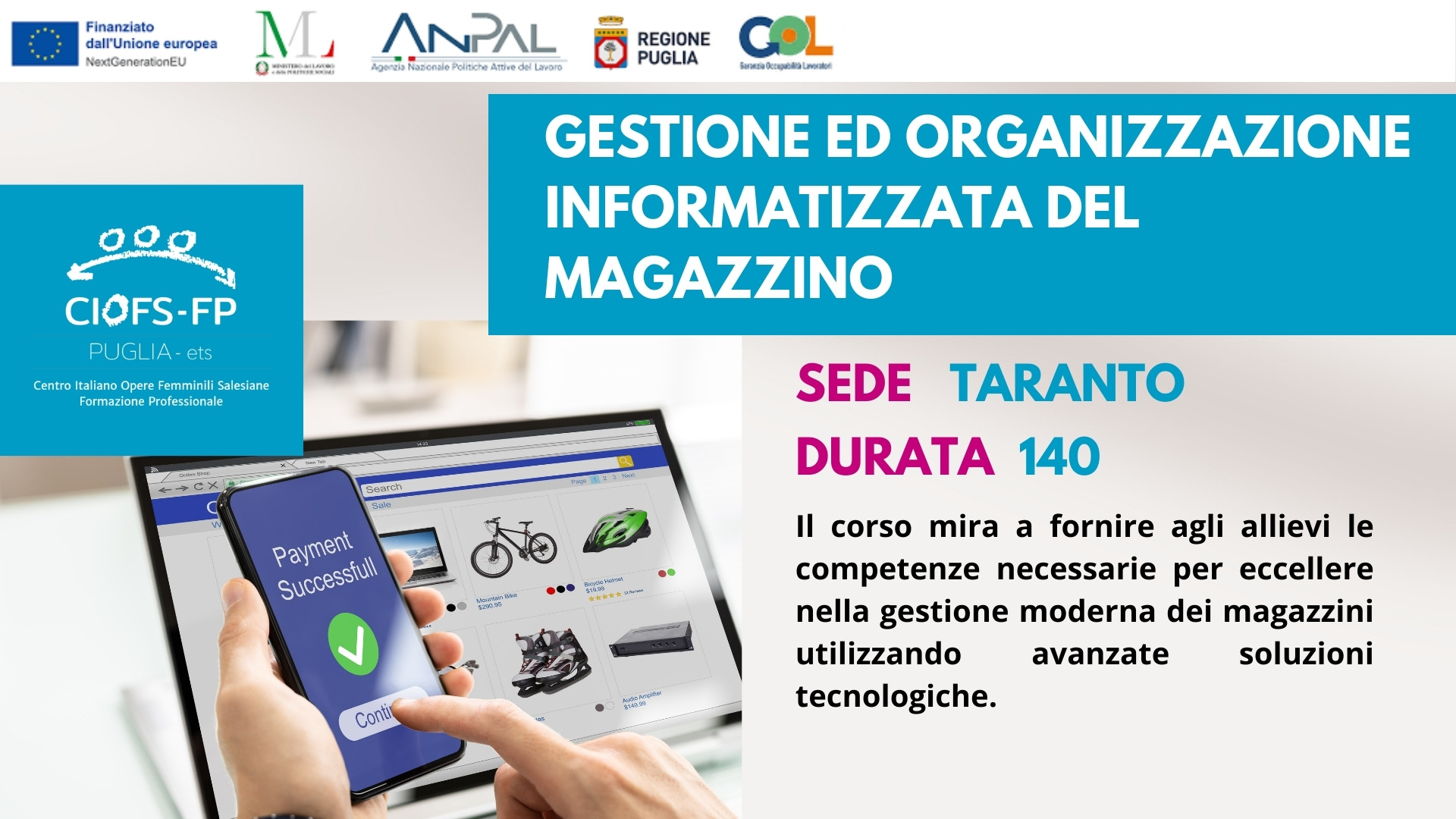 - Padroneggiare l’utilizzo di software di gestione magazzino per pianificare e controllare le operazioni.