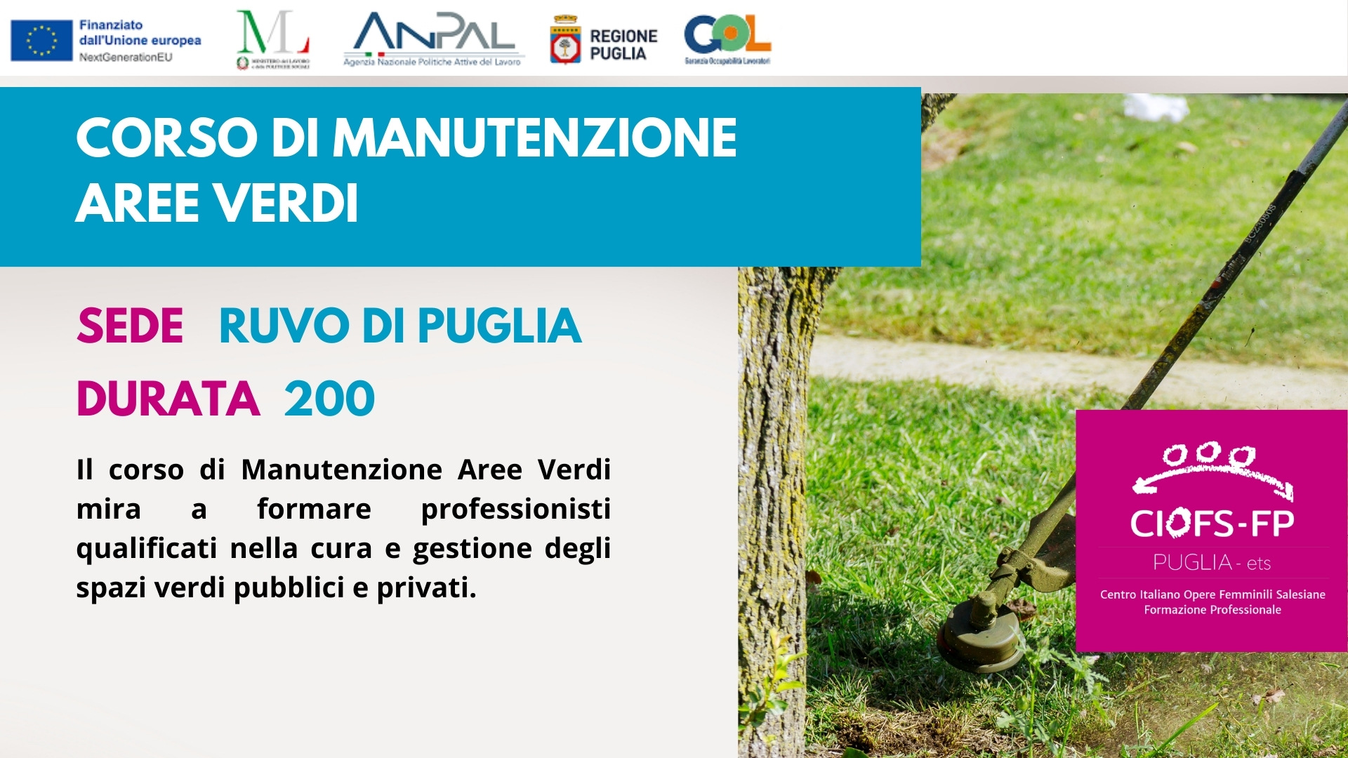 Il corso di Manutenzione Aree Verdi mira a formare professionisti qualificati nella cura e gestione degli spazi verdi pubblici e privati. Gli obiettivi principali del corso sono: