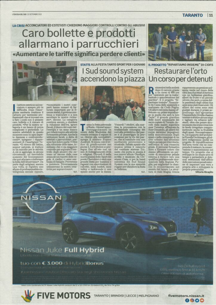 Oggi L’Edicola del Sud ci dedica uno strillo di copertina ed un bellissimo articolo nella cronaca di Taranto. Davvero grazie a Vittorio ricapito per lo splendido articolo e la sempre grande attenzione dedicata a queste tematiche sociali ed ambientali!